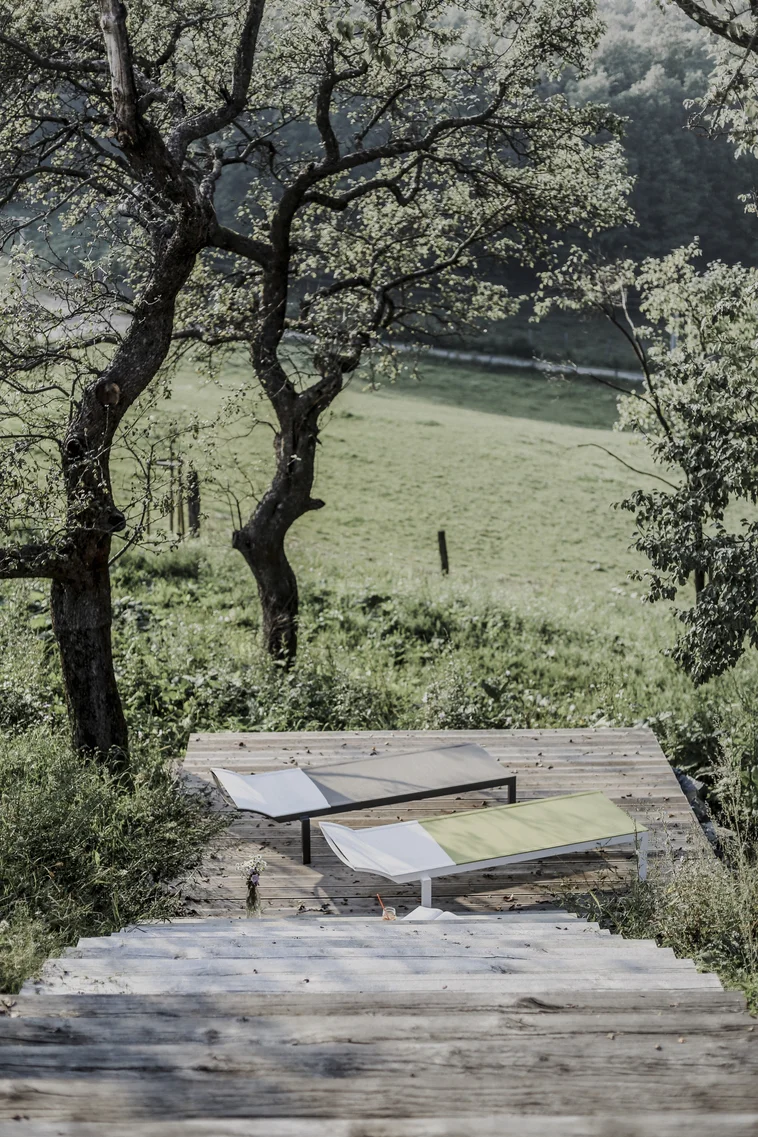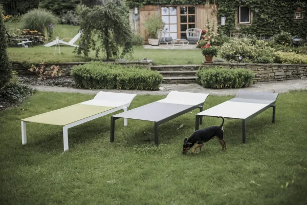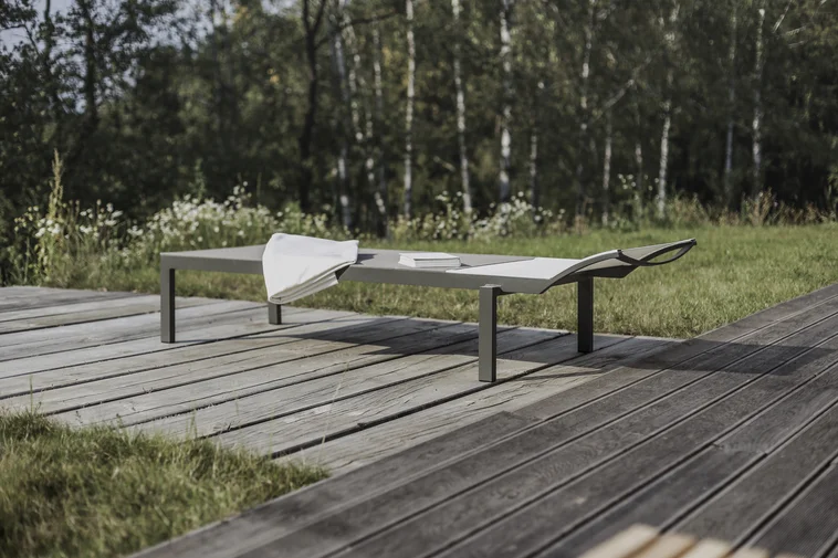 - Materijal: Konstrukcija od aluminijske legure s praškastim premazom, sjedalo i naslon izrađeni od vanjske tkanine Batyline®