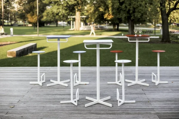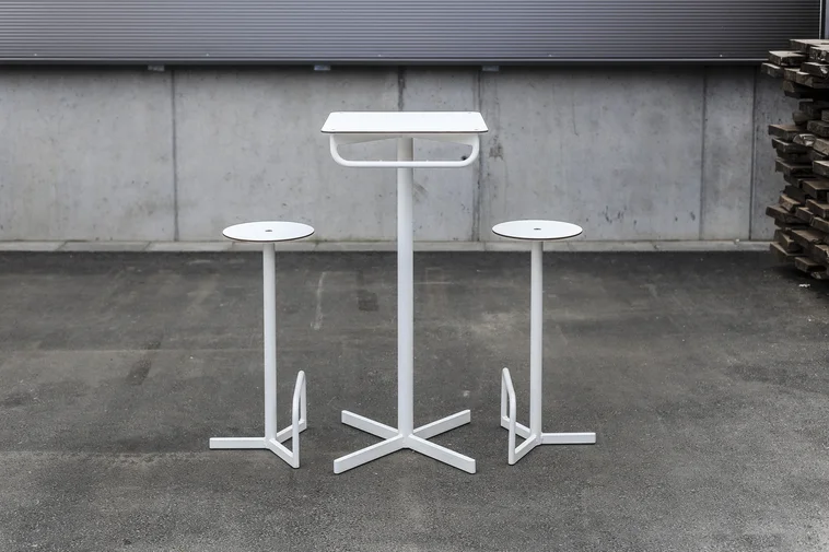 - Materijal: Drvena konstrukcija, čelične trake pocinčane s praškastim premazom, ploča stola izrađena od HPL-a
