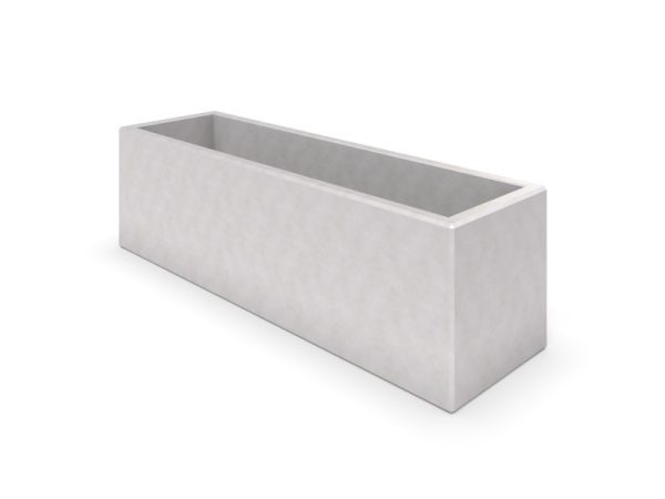 Četvrtasta žardinjera izrađena od sivog deco betona s odvodnom rupom na dnu. Obitelj proizvoda WISA uključuje i klupe i kante za smeće.