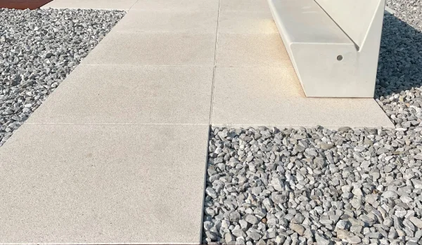 Projekti javnih prostora koji koriste granitne ploče dimenzija 110×100 cm, debljine 20 mm s poliranom, brušenom ili bušenom završnom obradom postavljene na podlogu od pijeska i betona.