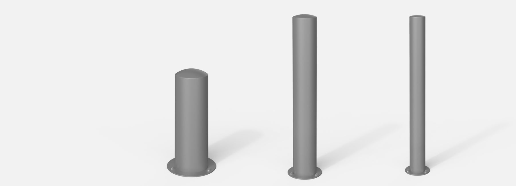 Stup za pješake od pocinčane čelične cijevi u tri veličine (D=102, 152 ili 219 mm) sa zaobljenim završnim elementom od čeličnog lima.