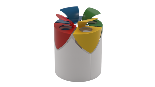 Kanta za otpad Kurt ističe se svojim originalnim oblikom. Sastoji se od cilindričnog bubnja jedinstvenog oblika na vrhu, izrađenog od pocinčanog lima i izrezanog laserskom tehnologijom. Unutarnja struktura sastoji se od baze s mogućnošću pričvršćivanja na tlo, izrađene od pocinčanog lima, i pocinčanih čeličnih profila za podupiranje gornjih poklopaca. Četiri dijela s poklopcima koji se mogu otvoriti i savijati na vrhu, izrađeni od pocinčanog lima i izrezani laserskom tehnologijom, imaju oblikovani prednji poklopac i gornji otvor za ubacivanje otpada. Svaki odjeljak opremljen je cilindričnim spremnikom iznutra, izrađenim od pocinčanog lima i s gornjim rubom otpornim na rezanje, za prikupljanje otpada (vreća nije uključena). Na prednjoj strani svaki segment opremljen je oznakom vrste otpada koji se prikuplja.