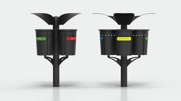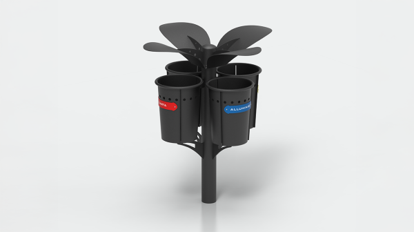 Sastoji se od potpornog uspravnog dijela izrađenog od okrugle pocinčane čelične cijevi s polusfernim pocinčanim čeličnim poklopcem na vrhu. Poklopci u obliku lista s ojačavajućim lunetama izrađenim od pocinčanog čeličnog lima, dobivenim rezanjem plazmom visoke definicije. Donji krakovi u obliku lista za podupiranje košara od pocinčanog čeličnog lima. Košare u obliku krnjeg stošca izrađene od pocinčanog lima s kružnim rupama u gornjem dijelu; gornji dio je obrubljen okruglom pocinčanom cijevi. Dno izrađeno od pocinčanog čeličnog lima s rupama za odvodnju kišnice. Svaka košara je na prednjoj strani opremljena pločicom koja označava vrstu sakupljanja.