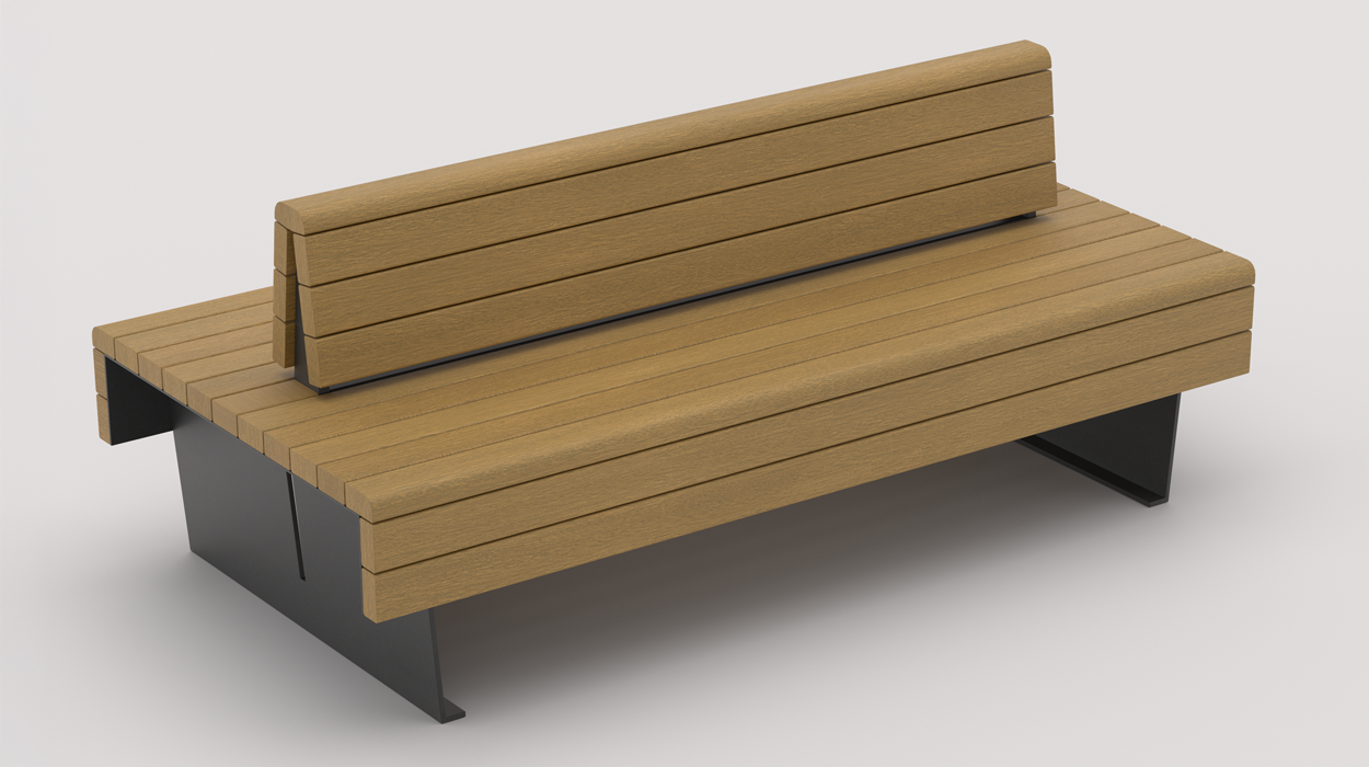 S osnovnim oblicima, klupa je karakterizirana oblogom od finog drva Okumè. Konstrukcija je izrađena od bočnih nosača od oblikovanog i prešano savijenog pocinčanog čeličnog lima, s urezima dobivenim visokokvalitetnim plazma rezanjem. Dvostruko sjedalo izrađeno je od tijela od pocinčanog čeličnog lima prekrivenog drvenim profilima Okumè. Gornji naslon također je prekriven drvenim letvicama Okumè pričvršćenim na tijelo od pocinčanog čeličnog lima. Klupa je opremljena rupama u podnožju za pričvršćivanje na tlo.