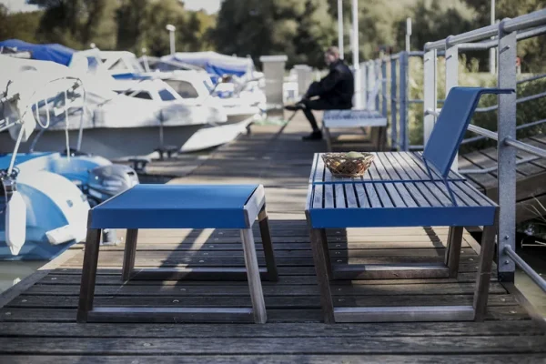 - Materijal: Drvena konstrukcija, čelične trake sa strane, pocinčane s praškastim premazom, čelični naslon prekriven Batyline®-om