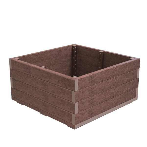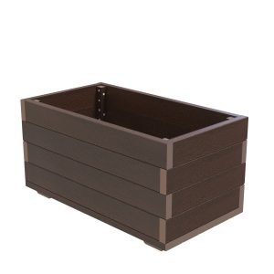 Žardinjera iz Flora linije, izrađena u cijelosti od 100% recikliranih plastičnih letvica, bez održavanja s vijcima od nehrđajućeg čelika, dimenzija: 1000 x 1000 x 516 mm.