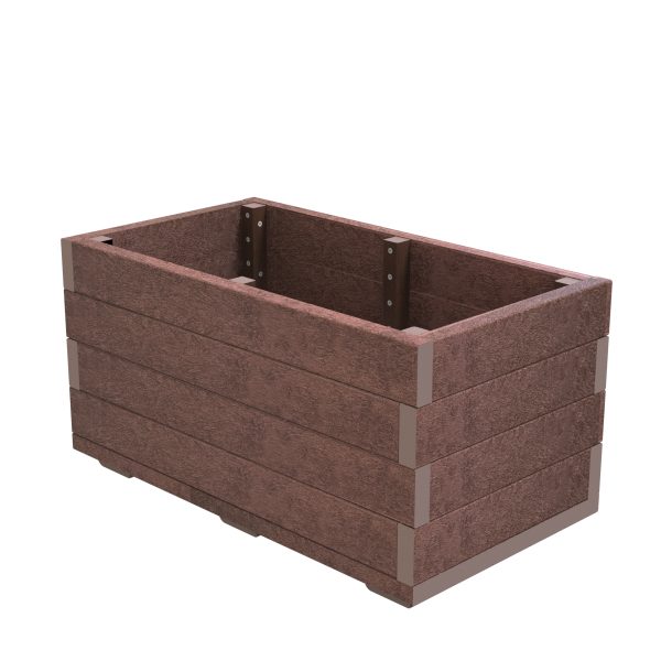 Žardinjera iz Flora linije, izrađena u cijelosti od 100% recikliranih plastičnih letvica, bez održavanja s vijcima od nehrđajućeg čelika, dimenzija: 1000 x 550 x 516 mm.