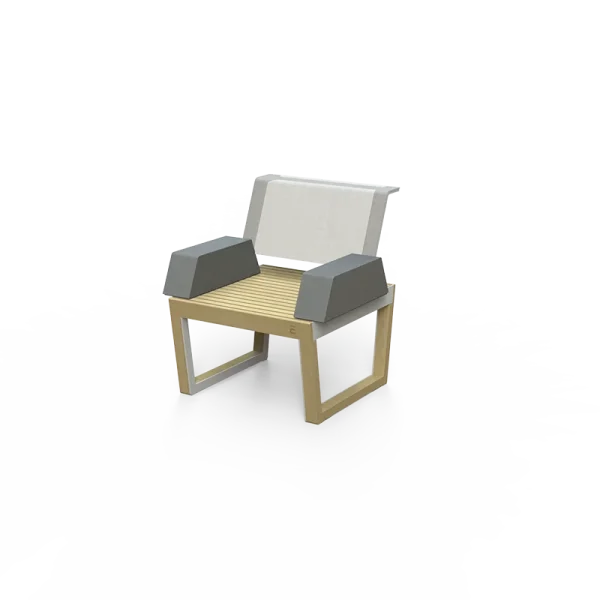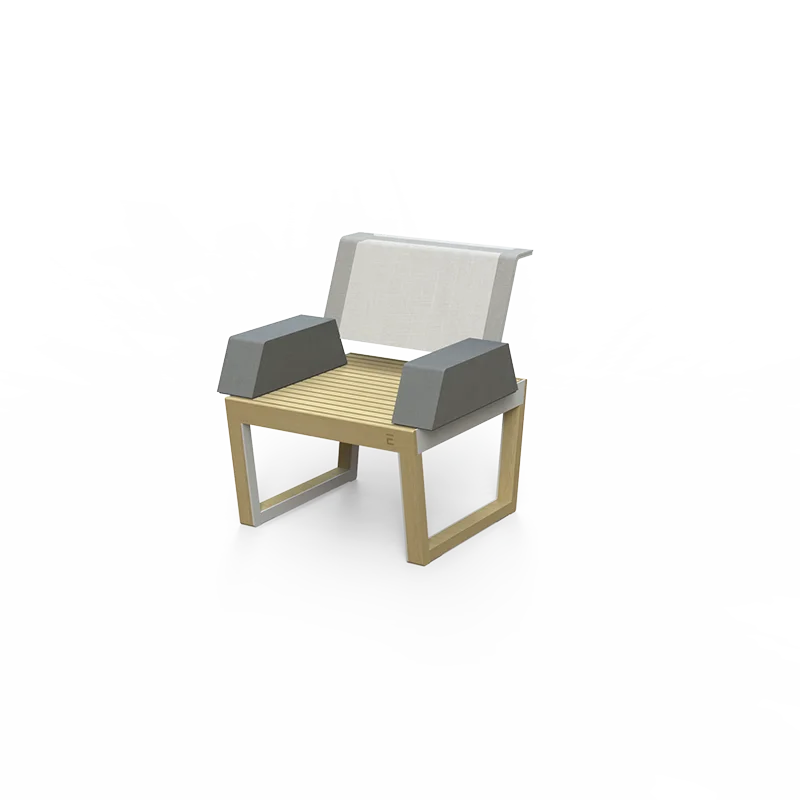 - Materijal: Drvena konstrukcija i sjedalo, čelične trake sa strane, pocinčane s praškastim premazom, naslon prekriven Batyline®-om, nasloni za ruke izrađeni od vanjske pjene Dryfeel® prekriveni vodootpornom vanjskom tkaninom