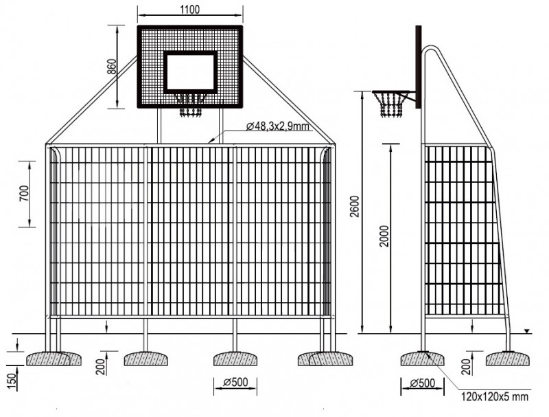 Mreža gola izrađena od metalnih šipki fi 12 mm i fi 8 mm i lanaca fi 5 mm.