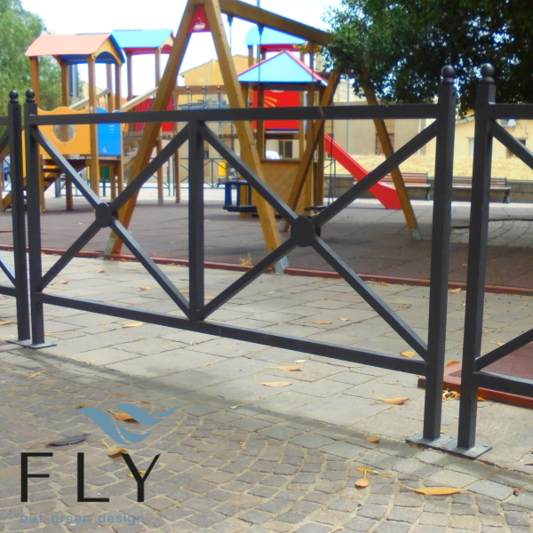 Jednostruka poprečna barijera Grade L.150 – pričvršćuje se vijcima. Pregrada izrađena od dva nosača od četverokutnog cjevastog čelika s gornjim ukrasom (svornjak i kugla) od kovanog čelika.