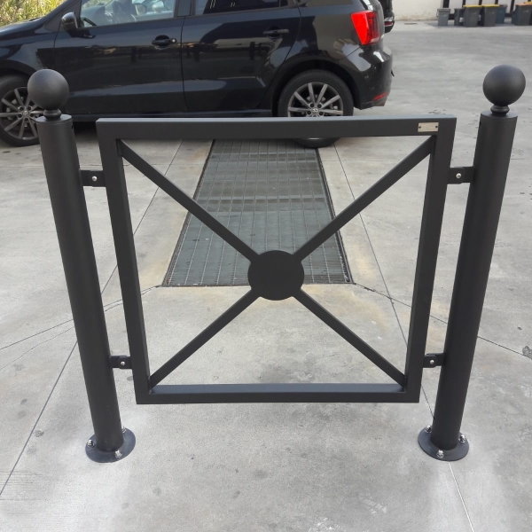 Modularna barijera Madrid L.100 cm dodatni modul – za pričvršćivanje (jedan nosač + 1 ploča). Pregrada izrađena od cjevastog čeličnog nosača s gornjim klinom i kuglom od kovanog čelika. Oplate spojene na nosač čeličnim vijcima, izrađene od obodnog okvira u četvrtastom cjevastom i ravnom križu, sa središnjim čvorom koji se sastoji od okruglog prstena. Pregrada se isporučuje s pločom i nosačem koji se kontinuirano pričvršćuje na osnovni modul. Svi metalni dijelovi su pocinčani prema UNI standardima i bojani termoreaktivnim poliesterskim prahom prema raznim RAL nijansama. Za pričvršćivanje vijcima, isporučuje se s bazama opremljenim s 4 rupe za ekspanzijske vijke za pričvršćivanje na tlo. Koristi se za zaštitu nogostupa u blizini raskrižja ili za biciklističke staze.