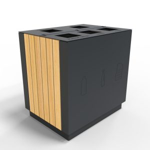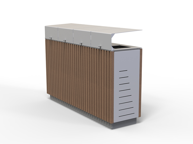 Elegantna kanta za recikliranje s drvenim detaljima i krovom – elegancija i funkcionalnost u urbanim prostorima