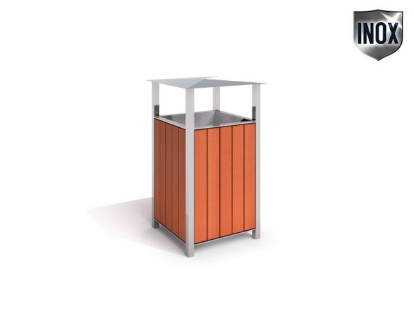 Kanta za smeće od nehrđajućeg čelika s poklopcem. Izrađena od smrekovog drva, dostupna u bojama hrasta i palisandra.