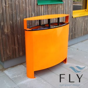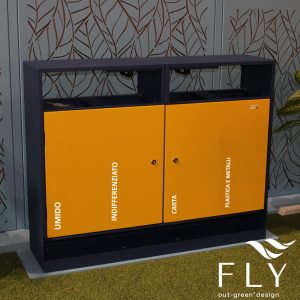 Island kanta za odvojeno prikupljanje otpada s 3 kvadratna sektora koji se sastoje od dvije stranice od pocinčanog i lakiranog čelika međusobno povezane dnom i gornjom pločom također od čelika, sve izrezano laserskom tehnologijom, presavijeno i zavareno. Prednji i stražnji dio spremnika obložen je letvicama od kvalitetnog drva ili borovine; prednji pokrov je pak opremljen šarkama i bravom s univerzalnim ključem za pražnjenje unutarnjeg spremnika u pocinčanom limu. Gornji dio kante opremljen je otvorom za unošenje otpada. Podnožje kante opremljeno je rupama za pričvršćivanje na tlo pomoću tipli.