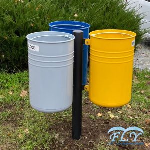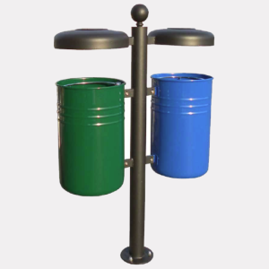 Kanta za razvrstavanje otpada trokutastog oblika. Pocinčana i lakirana čelična konstrukcija. S držačem za vrećicu.