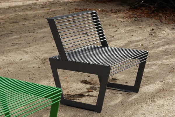 - Materijal: čelična konstrukcija s antikorozivnim cinčanim premazom i praškastim premazom, sjedalo izrađeno od okruglih čeličnih rešetki