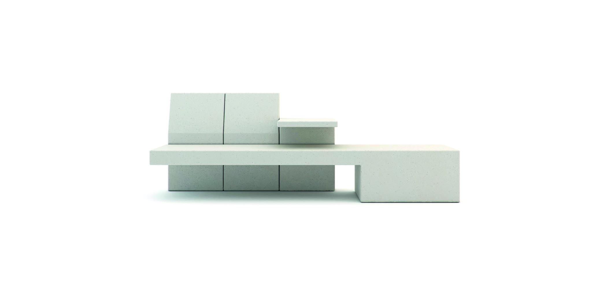 Kolekcija modularnih klupa izrađenih od HPC (High Performance Concrete). Osnovna kompozicija sastoji se od konzolno postavljenog monolitnog elementa u kombinaciji s najmanje jednim modulom naslona za leđa ili modulom stola.