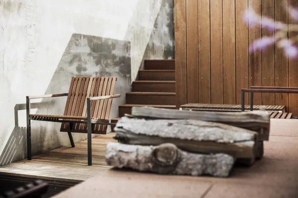 - Materijal: Čelična konstrukcija sa zaštitnim cinkovim premazom i praškastim premazom, masivno drvo s opcijskim nanošenjem ulja