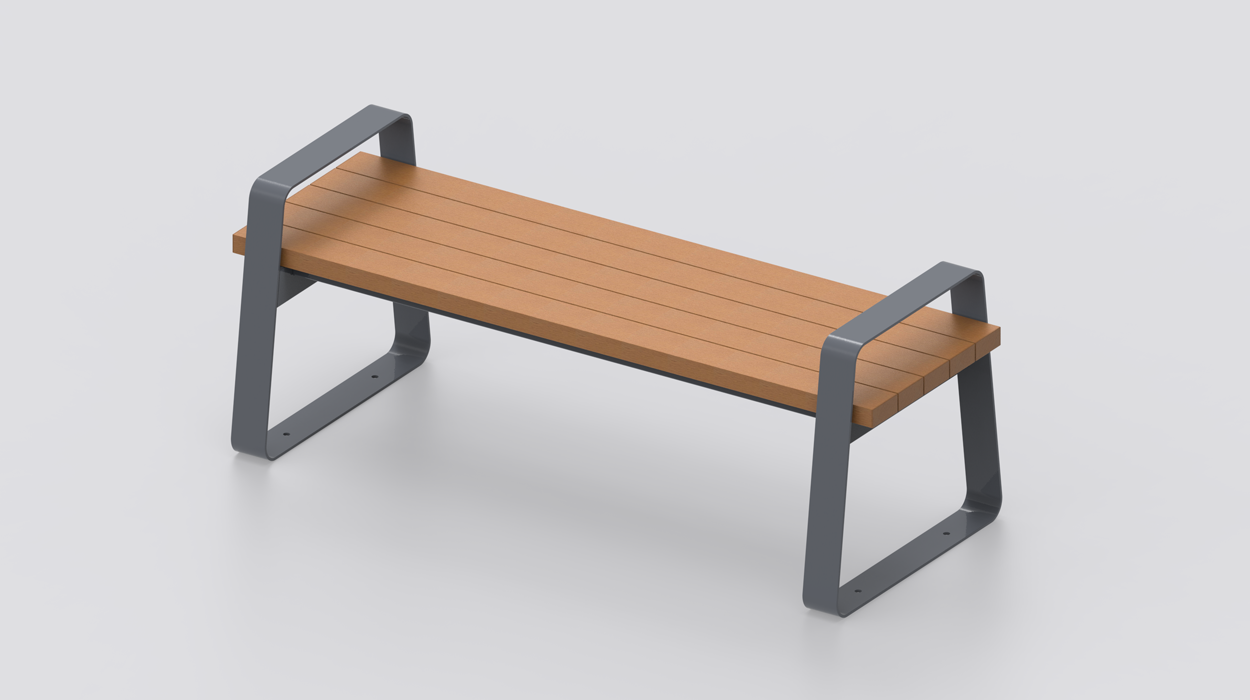Udobna WPC površina za sjedenje: Površina za sjedenje izrađena je od otpornih oblikovanih WPC letvica presjeka 90×40 mm, pričvršćenih na čvrsti pocinčani čelični okvir s rupama za jednostavnu montažu na nosače.