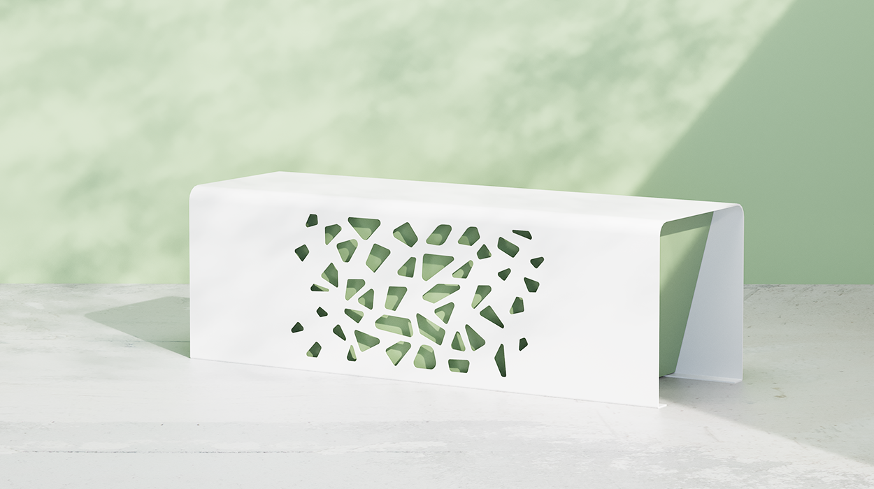 Kako bi se prilagodila različitim estetskim potrebama, klupa je dostupna u osnovnoj završnoj obradi “čisto bijela RAL 9010” za vanjsku strukturu i “svijetloplava RAL 5012” za unutarnju strukturu. Nadalje, na zahtjev je moguće zatražiti prilagođene boje i završne obrade kako bi se klupa savršeno integrirala u okolni prostor. Konstrukcija, izrađena od pocinčanog čelika i obojena termoreaktivnim prahovima, jamči visoku otpornost na atmosferske utjecaje i dugi vijek trajanja tijekom vremena.