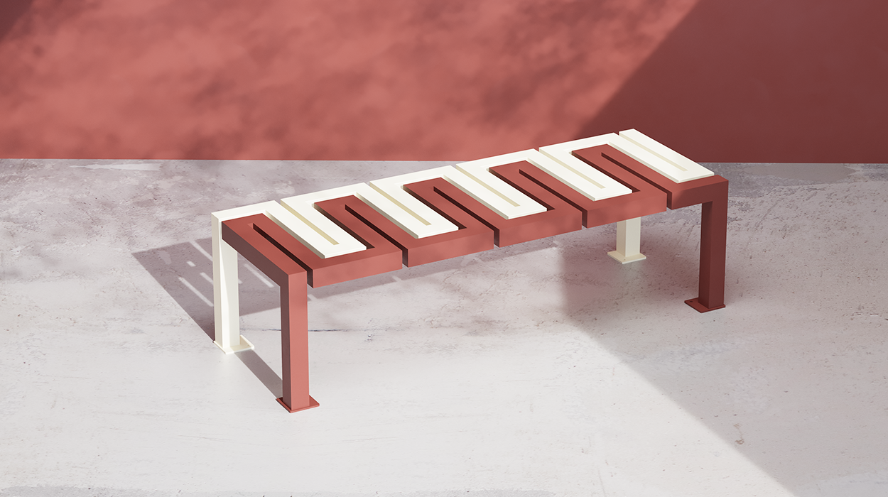 Kako bi se prilagodila različitim estetskim potrebama, klupa je dostupna u osnovnoj završnoj obradi “svijetla bjelokost RAL 1015” i “crvenkastosmeđa RAL 8012”. Nadalje, na zahtjev je moguće zatražiti prilagođene boje i završne obrade kako bi se klupa savršeno integrirala u okolni prostor. Konstrukcija, izrađena od pocinčanog čelika i obojena termoreaktivnim prahovima, jamči visoku otpornost na atmosferske utjecaje i dugi vijek trajanja tijekom vremena.