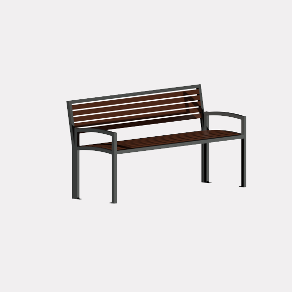 Klupa Carmen s naslonima za leđa i ruke, sa konstrukcijom od pocinčanog i lakiranog čelika i sjedalom i naslonom za leđa od plemenitog drva ili nordijskog bora.