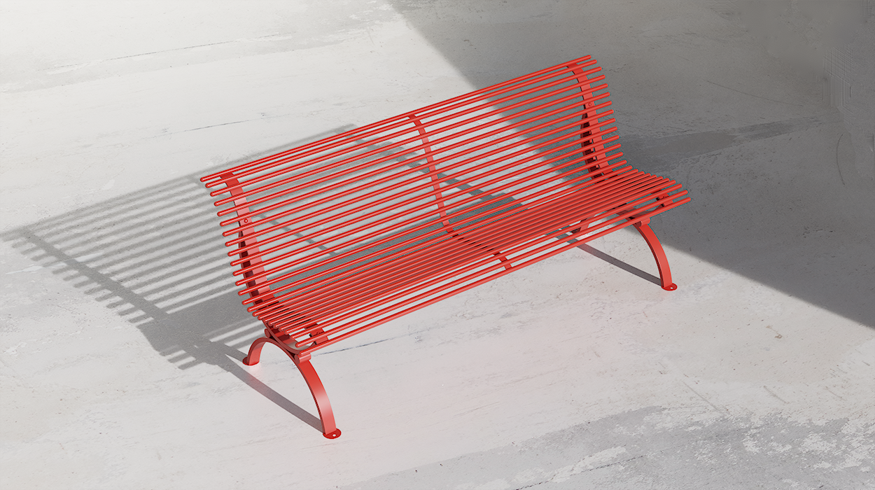 Kako bi se prilagodila različitim estetskim potrebama, dostupna je u osnovnoj završnoj obradi “prometno crvena RAL 3020”. Nadalje, na zahtjev je moguće zatražiti prilagođene boje i završne obrade kako bi se klupa savršeno integrirala u okolni prostor. Konstrukcija, izrađena od pocinčanog čelika i obojena termoreaktivnim prahovima, jamči visoku otpornost na atmosferske utjecaje i dugi vijek trajanja tijekom vremena.