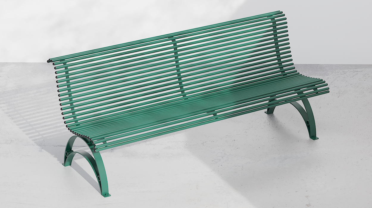 Kako bi se prilagodila različitim estetskim potrebama, dostupna je u osnovnoj završnoj obradi “mahovinasto zelena RAL 6005”, jarkoj boji koja privlači pažnju. Nadalje, na zahtjev je moguće zatražiti prilagođene boje i završne obrade kako bi se klupa savršeno integrirala u okolni prostor. Konstrukcija, izrađena od pocinčanog čelika i obojena termoreaktivnim prahovima, jamči visoku otpornost na atmosferske utjecaje i dugi vijek trajanja tijekom vremena.