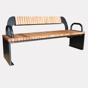 Klupa Doha bez naslona, s pocinčanom i lakiranom čeličnom konstrukcijom, sjedalo od plemenitog drva ili nordijskog bora.