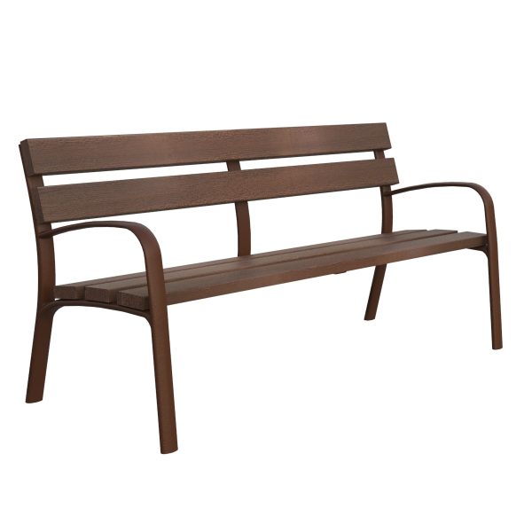 EcoCity klupa s 5 letvica izrađena od 100% recikliranog materijala (50% reciklirana plastika i 50% bioamasa – rižine ljuske) i termoplastičnih nogu od recikliranog materijala, uključuje obojenu čeličnu ploču.