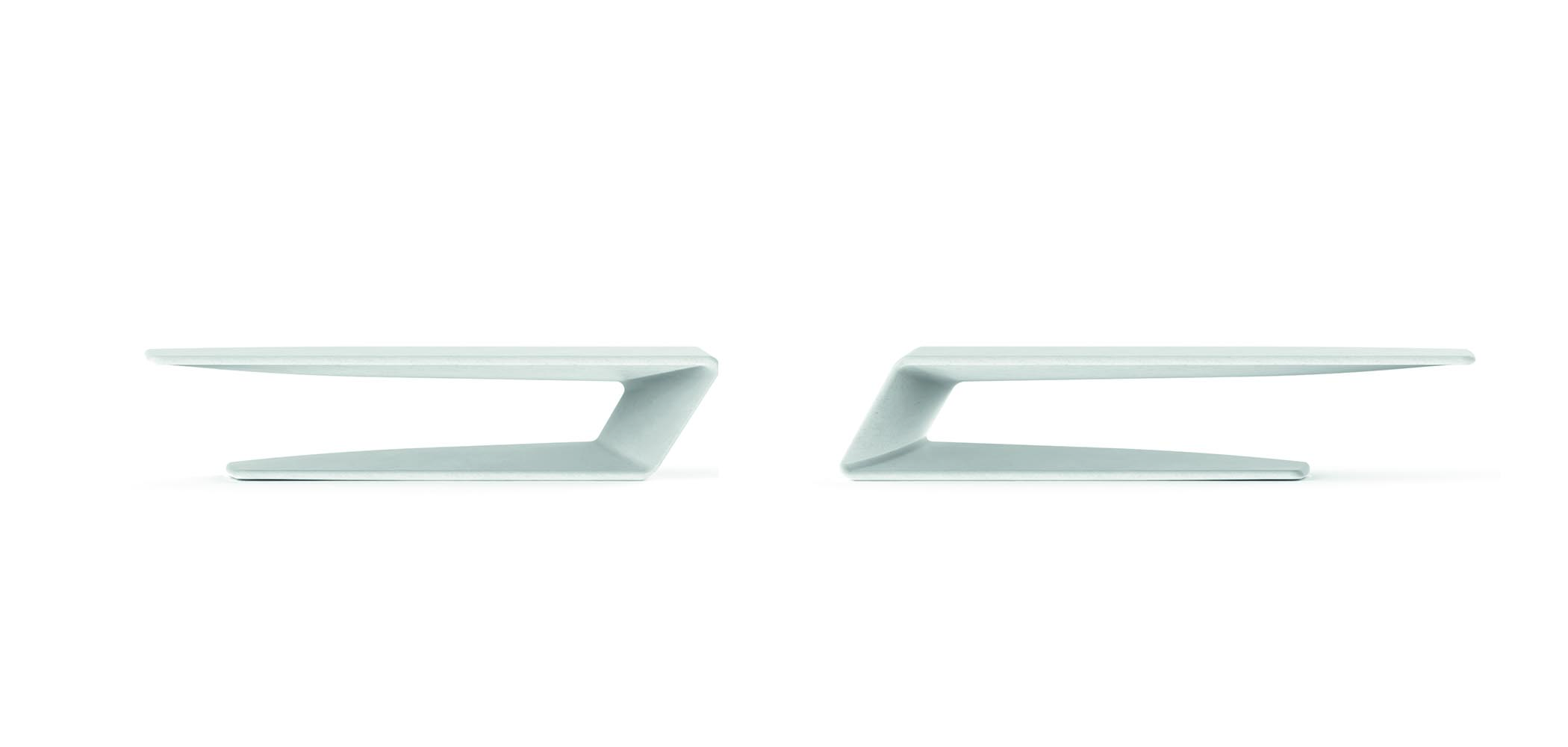 Kolekcija klupa bez naslona od HPC (beton visokih performansi) sastavljena od strukture s konzolnim sjedalima. Dostupna su dva modela: jedan s desnim sjedalom, drugi s lijevim sjedalom.