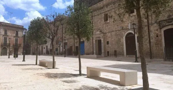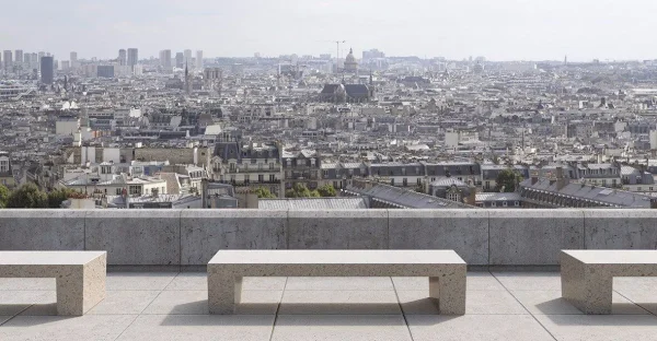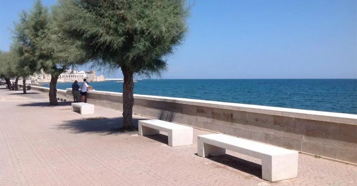 Monolitna linearna klupa mod. “ERACLEA” sa sjedalom pravokutnog oblika.