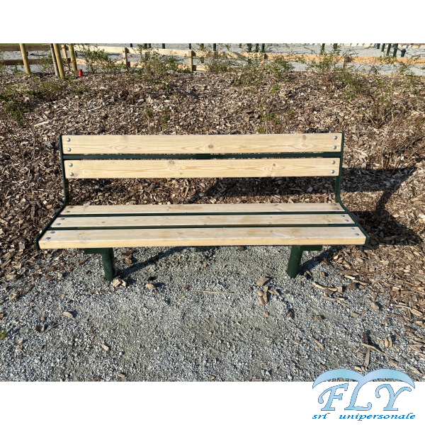 Klupa s naslonom Greta – sastoji se od naslona i sjedala od plemenitog drva ili nordijskog bora, konstrukcije od pocinčanog čelika te naknadno obojane epoksidnim prahom u raznim RAL bojama. Klupa se sastoji od 2 cjevasta nosača. Ploče se pričvršćuju na podlogu za pričvršćivanje na tlo pomoću tipli. Drvene letvice su od plemenitog drva ili nordijskog bora impregnirane u autoklavu u skladu sa standardima DIN 68800-3 kako bi se drvo zaštitilo od napada gljivica, plijesni i atmosferskih čimbenika.