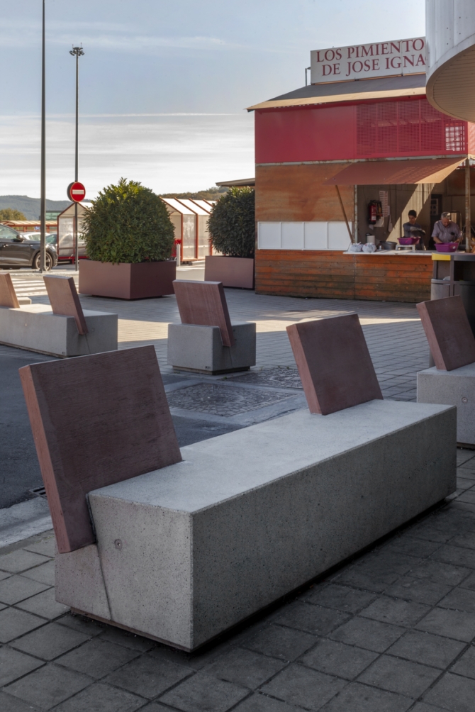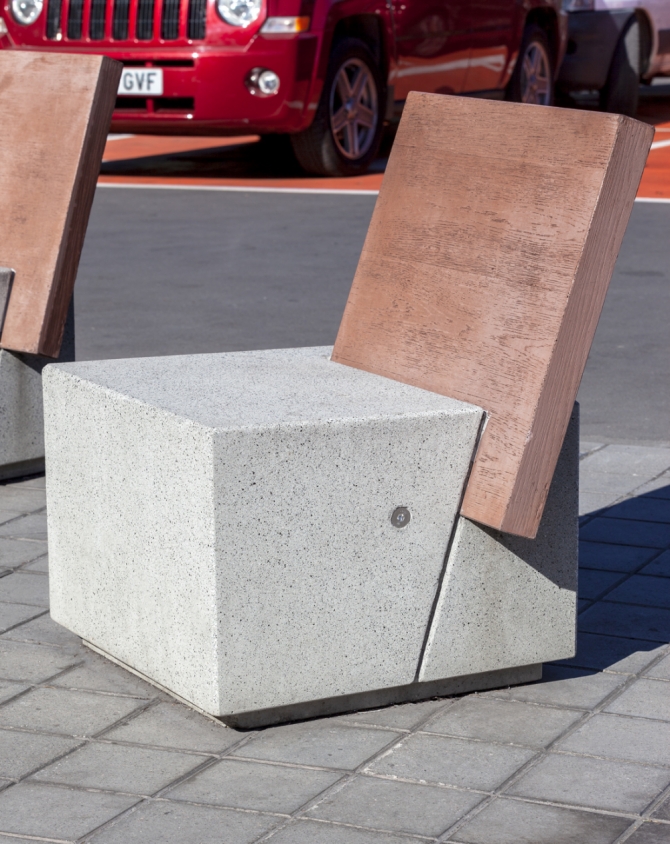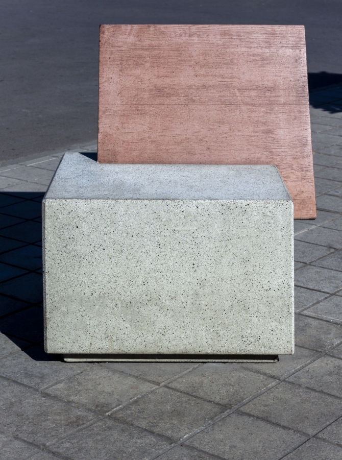 Jednodijelna geometrijska betonska klupa, s mogućnošću naslona od betona, imitacije drva ili prirodnog drva. Idealna za poboljšanje životnog prostora, precizna i simetrična.