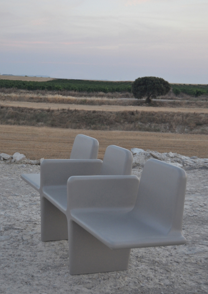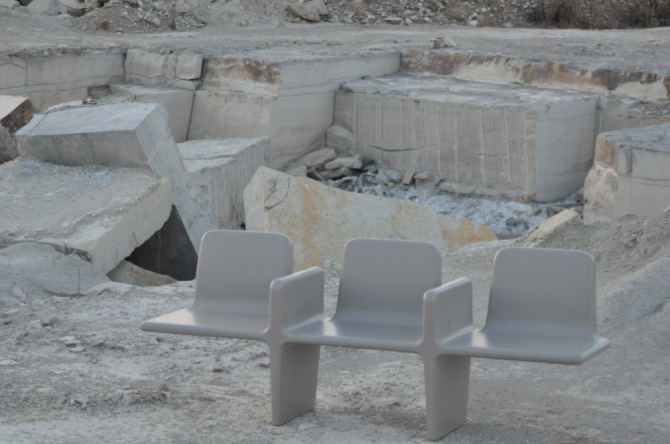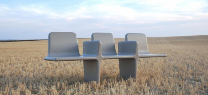 Betonska klupa / tabure Russes izrađena u jednom komadu.