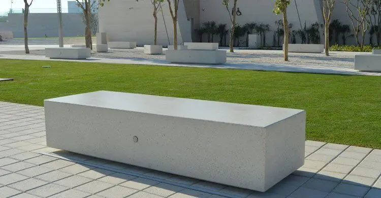 Modularna klupa pravokutnog presjeka mod. “KUBB M”, koja se sastoji od monolitne klupe opremljene tamnom bazom.