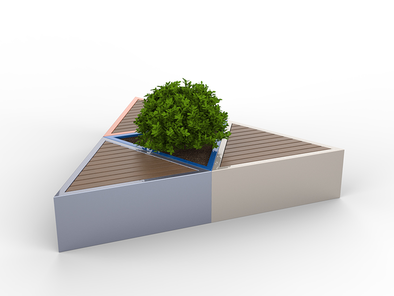 INOPLEX Modularna trokutasta klupa za ulični namještaj bez naslona: Kreativnost u rasporedu prostora s izdržljivošću čelika i toplinom drva