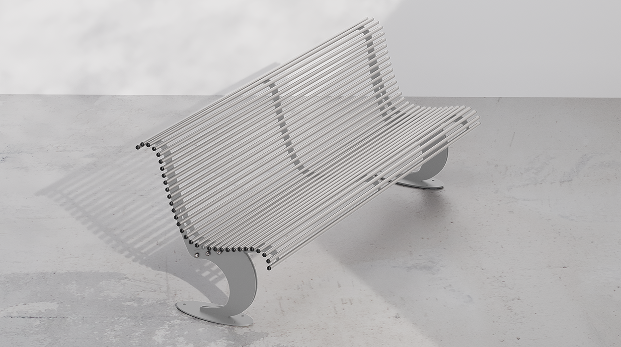 Izrađena od pocinčanog čelika, sastoji se od lučnog nosača br. 2, dvostrukog oblika od pocinčanog čeličnog lima dobivenog laserskim rezanjem. Svaki pojedinačni nosač opremljen je osnovnom pločom od pocinčanog lima. Školjka sjedala i naslona izrađena je od profila br. 32 od okrugle pocinčane čelične cijevi s PVC završnim kapama sa sfernim glavama. Profili su zavareni na posebne oblike od pocinčanog čeličnog lima sa stiliziranom šupljinom iznutra. Kako bi se osiguralo udobno sjedenje, i školjka i oblici na koje su profili zavareni dizajnirani su kako bi se osigurala maksimalna ergonomija. Engleski: