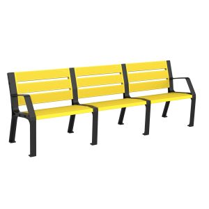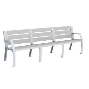 Klupa Maverik od termoplastičnog materijala recikliranog iz mora, velike robusnosti, ne zahtijeva održavanje, s vijcima od nehrđajućeg čelika i UV zaštitom.