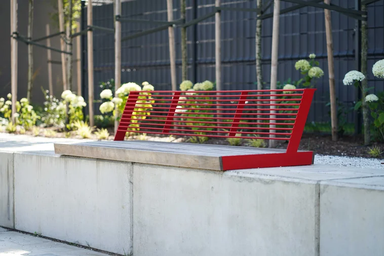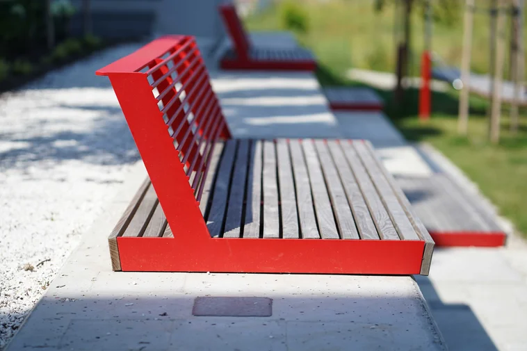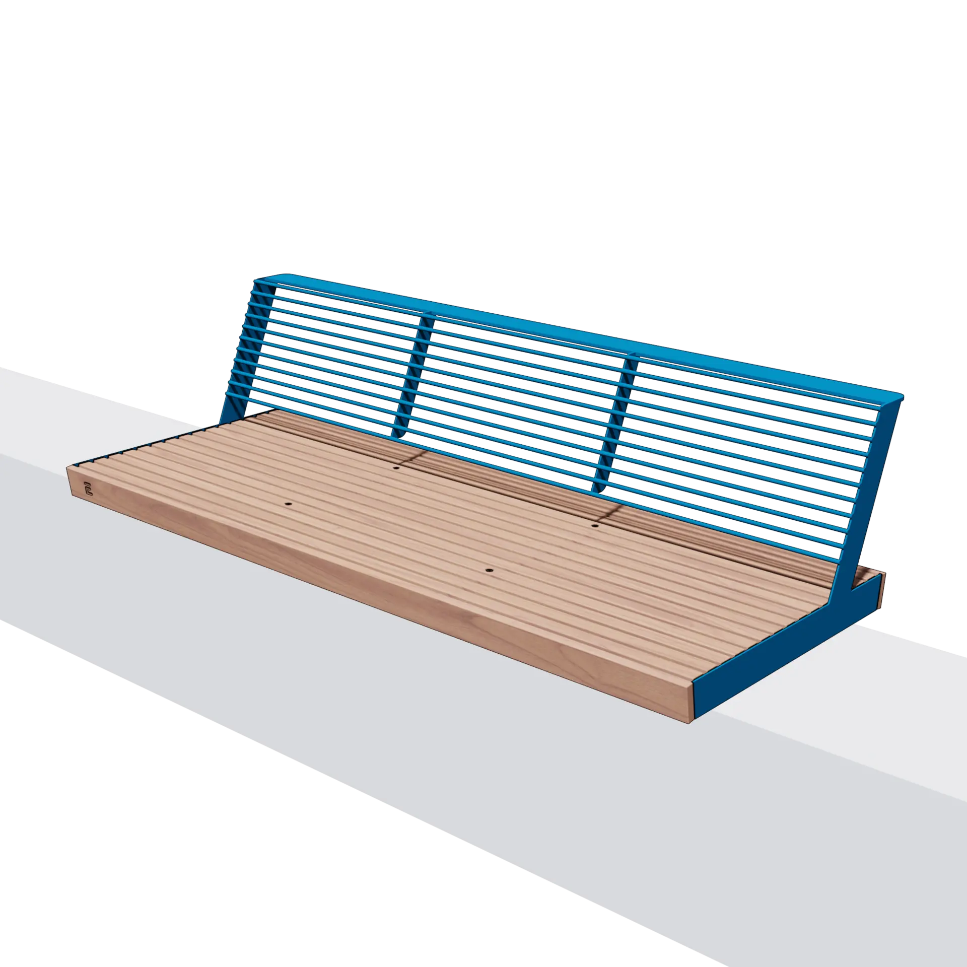 - Materijal: Konstrukcija se sastoji od čeličnog okvira sjedala i naslona. Drvene letvice sjedala pričvršćene su pričvršćivačima od nehrđajućeg čelika.