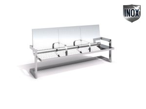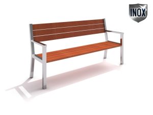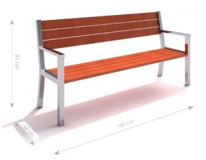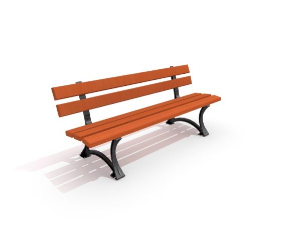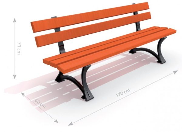 Klupa od lijevanog željeza s naslonom bez naslona za ruke. Sjedalo i naslon izrađeni od drva. Klupa zadržava elegantan i estetski izgled urbanog namještaja zahvaljujući lučnim čeličnim oblicima u skladu s drvom.