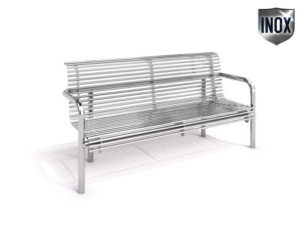 Klupa od nehrđajućeg čelika s naslonom. Sjedalo i naslon izrađeni su od nehrđajućeg čelika. Klupa zadržava elegantan i jednostavan izgled urbanog namještaja.