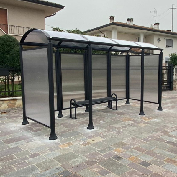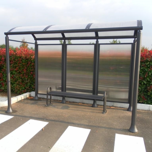 Čelična klupa koja se sastoji od dva bočna nosača oblikovana čeličnom prirubnicom oblikovanom laserskom tehnologijom i zavarenom pomoću dva cjevasta dijela na cjevasti luk. Na donji kraj luka zavarena je elipsasta baza, dizajnirana tako da se klupa može pričvrstiti na tlo ekspanzionim vijcima.