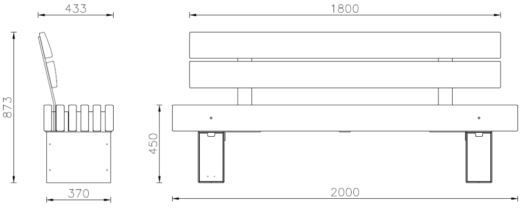 Klupa nordijskog stila, robusna i svestrana. Izvedena u više varijanti, dostupna sa ili bez naslona.