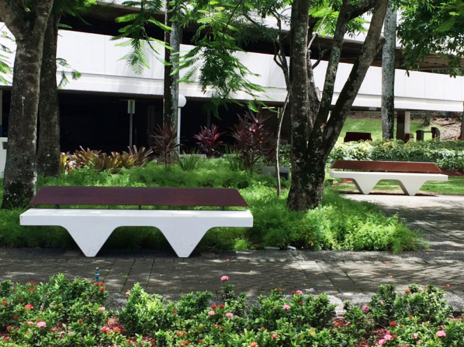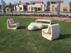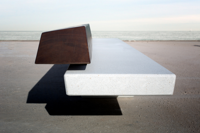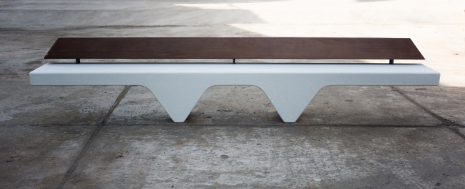 Betonska klupa Ripple velikog formata inspirirana “mreškama”, malim dinama formiranim od zrna finog pijeska koje nosi pustinjski vjetar.