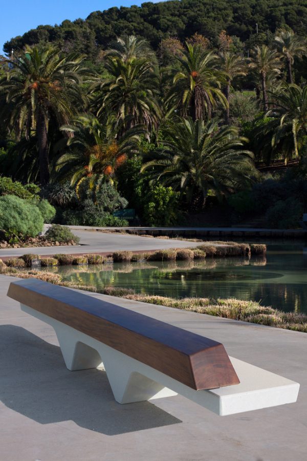 Materijal: predgotovljeni beton Petra 1; GRC imitacija drva; drvo iroko; drvo bor