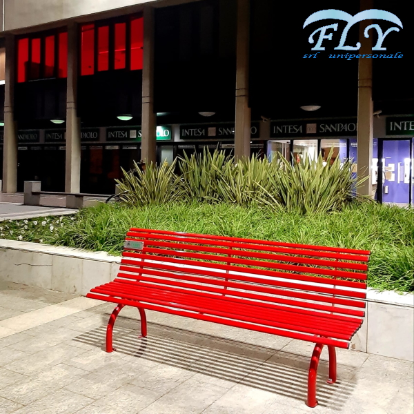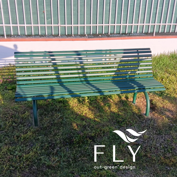 Klupa u potpunosti izrađena od pocinčanog čelika obojanog termoreaktivnim poliesterskim prahom u raznim RAL bojama.