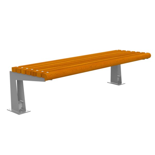 Klupa Ronda C-103 bez naslona, od metalnog okvira, te drvenih letvica od gvinejskog drva, tretiranih i lakiranih lazurom s otvorenim porama.