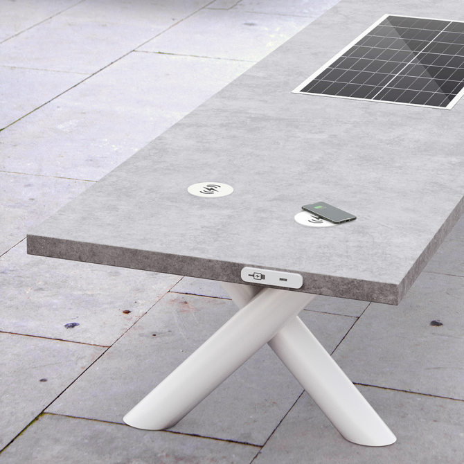 Opcionalno, klupa uključuje inteligentne priključne točke putem fotonaponske ploče za: