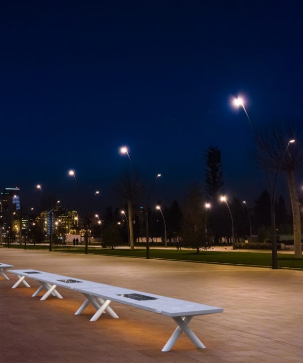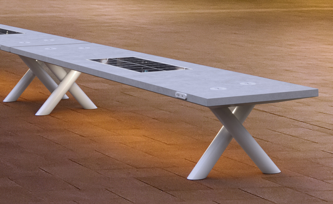 Pametna urbana klupa Sun-Set B, dizajnirana za stvaranje linearnih kompozicija, kao i mjesta za piknik i sastanke.